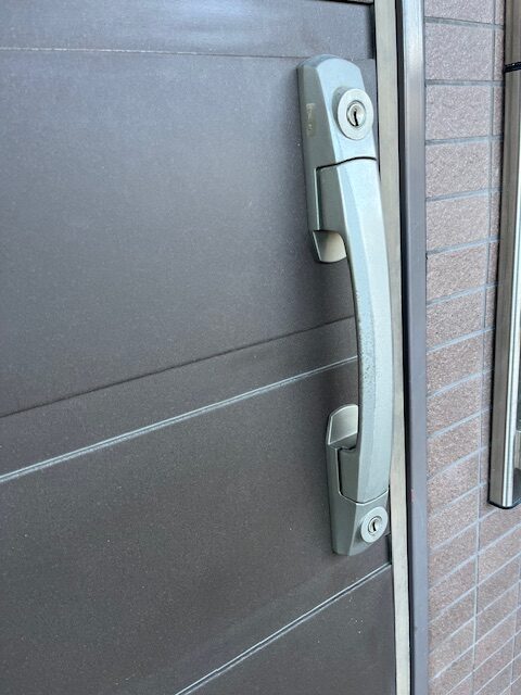 玄関錠前の操作が重くなってきたとのご相談を受け、宝塚市社町の戸建住宅にお伺いしました。現地では、入居当初から使用されている錠前が設置から10年以上経過しており、使用頻度も高いことから、経年による摩耗が不具合の主な要因と判断しました。