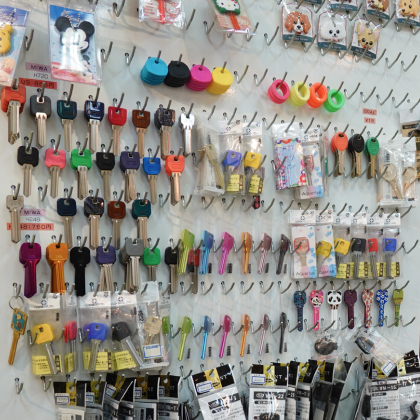 見た目だけでなく、鍵番号を隠すという役目も果たす立派な防犯グッズです。様々な種類がありますので、是非、お店にお越しいただきご覧ください。